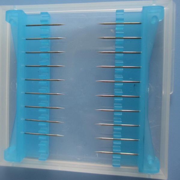 我司供应的顶针,材质为钨钢材料,其特性为:硬度高且耐用性能强。 用途:用于固晶机吸芯片时顶起芯片,方便吸起芯片。 包装规格:20支/盒。 规格介绍: 目前常用规格 (长)L=17, 有10度和15度,SR规格有如下: SR0.022、SR0.025、SR0.030、SR0.050、SR0.075、SR0.100 ....... 本公司供应的顶针常用型号如下: 17-0.7-10-0.22 17-0.7-10-0.25 17-0.7-10-0.30 17-0.7-15-0.22 17-0.7-15-0.25 17-0.7-15-0.30 其中型号为 17-0.7-10-0.22 的顶针用于做小功率产品。 实物图片展示如下: